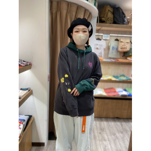 袖は刺繍、ポケット・バックはラバープリント、胸は染み込みプリントと、それぞれの加工方法の違いもポイントです◎