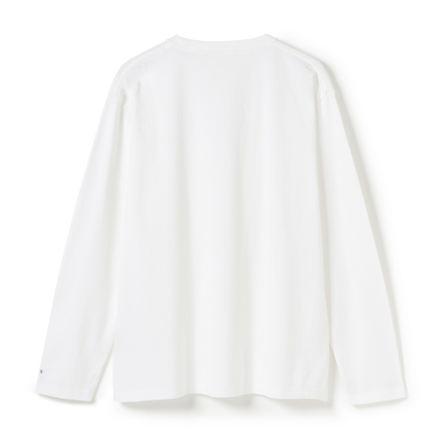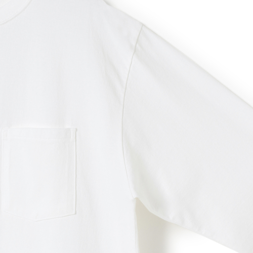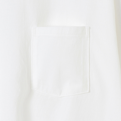“アメリカン・シーアイランドコットン”のオープンエンド糸を使用し、シンカー編み機で仕上げた生地を使ったポケット付きのロングスリーブTシャツ。素材そのものの特徴であるきめ細かな繊維をより肌で感じることができます。